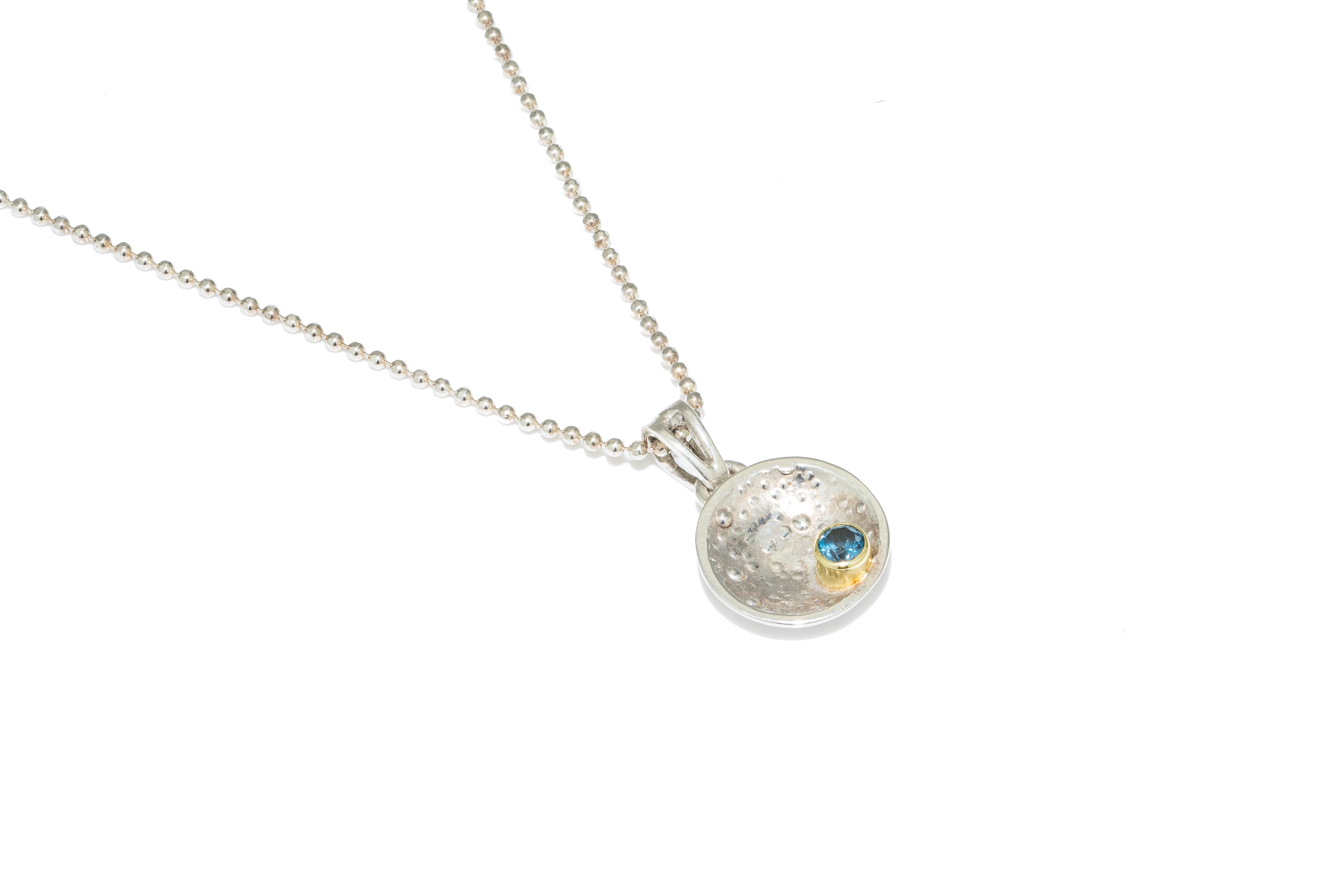 I måneskålen hviler en London Blue Topaz 3 mm / 0,14 ct – AAA kvalitet.
